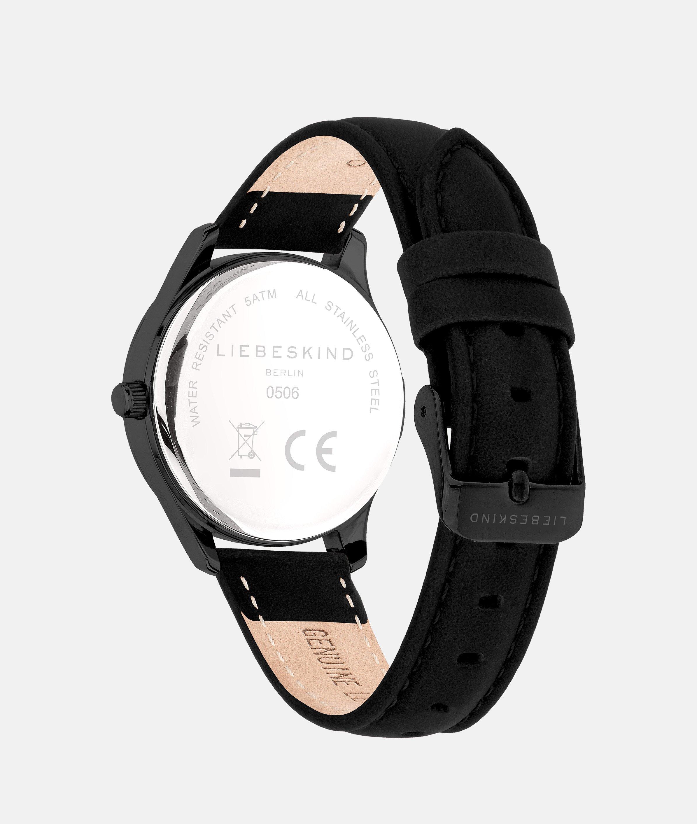 Rond polshorloge met leren band en gesp