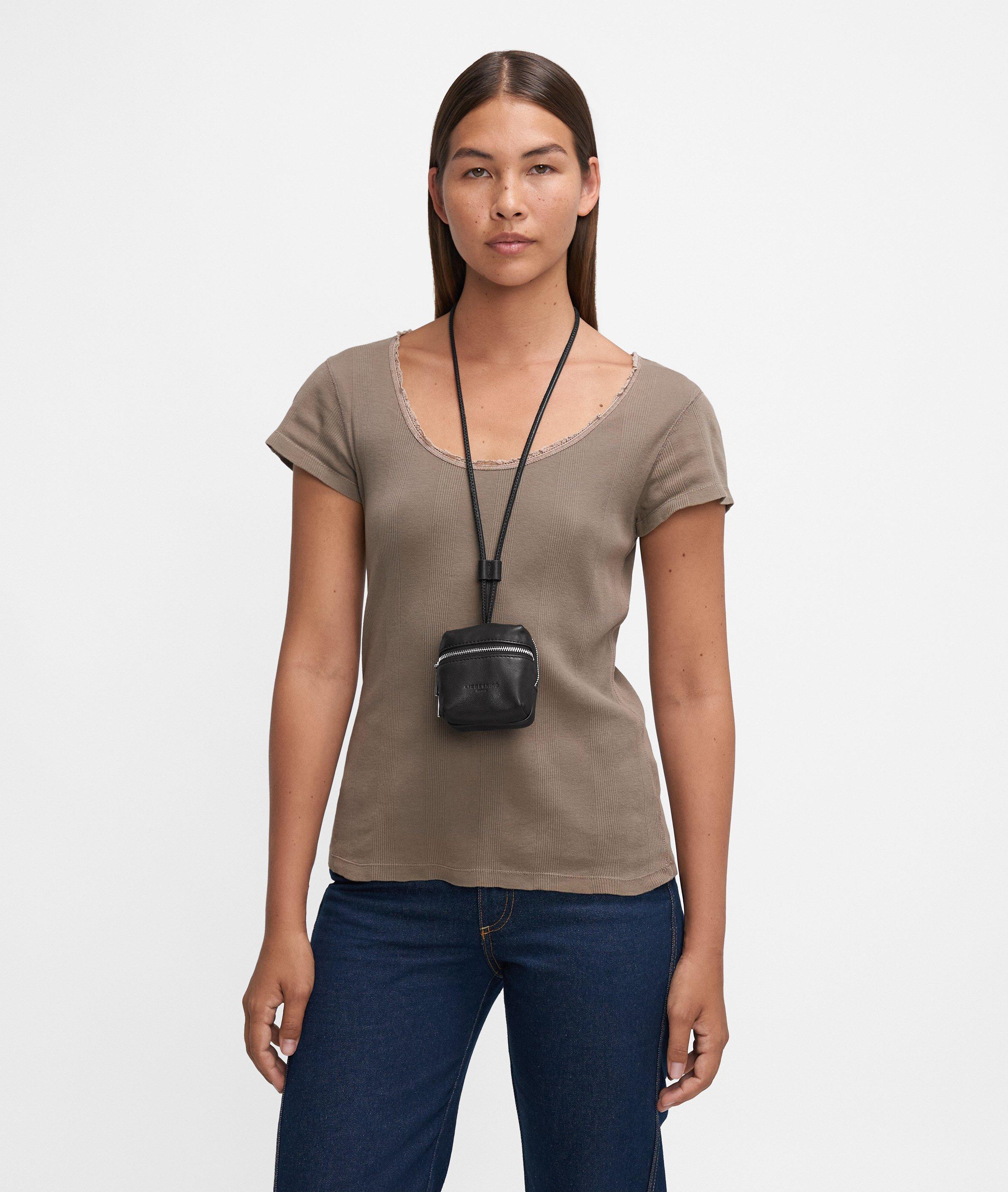 Meer dan alleen een hanger: gemaakt van zacht geitenleer combineert dit tasje een sleutelhanger en minitasje in één. Twee vakken met ritssluiting bieden ruimte voor kleingeld, pasjes of andere benodigdheden voor onderweg - veilig opgeborgen, altijd bij de hand. Aan de riem, aan de tas of om de nek - de verstelbare riem maakt hem flexibel. Het discrete logo opschrift rondt het ontwerp af. Voor iedereen die belang hecht aan de kleine dingen - en een flair heeft voor slimme details.